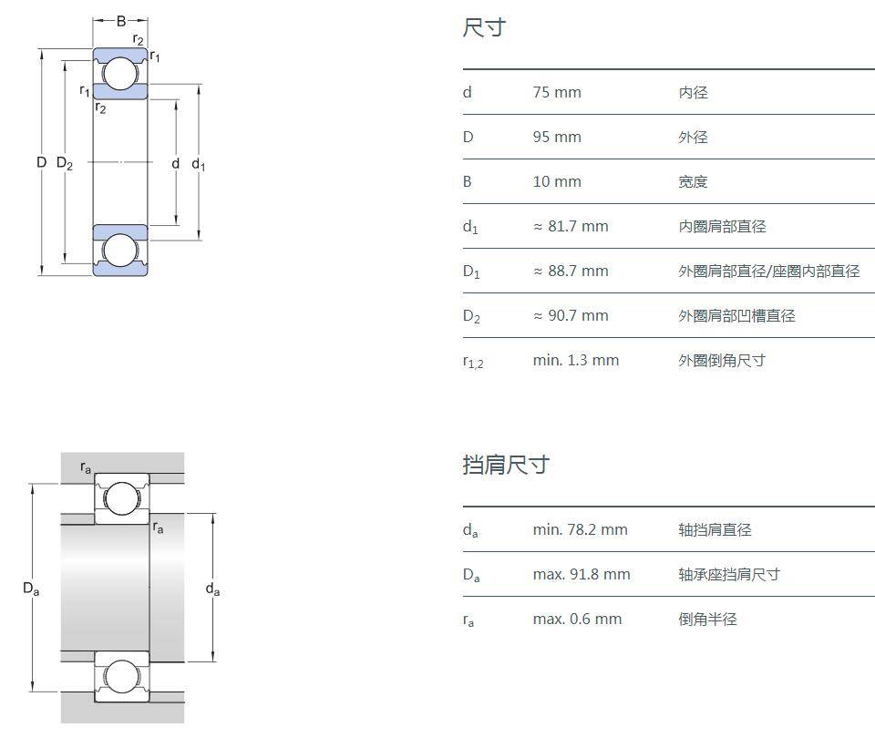 SIAIF不銹鋼深溝球軸承 S61815-2Z 詳細參數(shù)