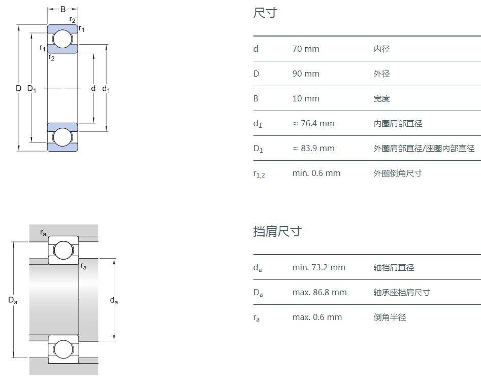 SIAIF不銹鋼深溝球軸承 S6814-2Z 詳細參數(shù)