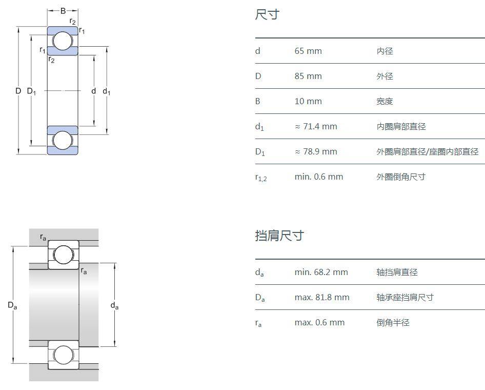 SIAIF不銹鋼深溝球軸承 S6813-2Z 詳細(xì)參數(shù)