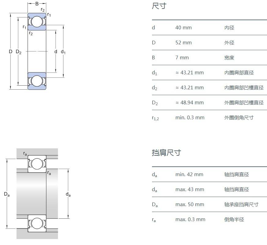 SIAIF不銹鋼深溝球軸承 S61808-2Z 詳細(xì)參數(shù)