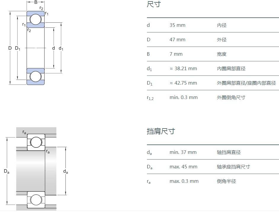 SIAIF不銹鋼深溝球軸承 S61807-2Z 詳細參數(shù)