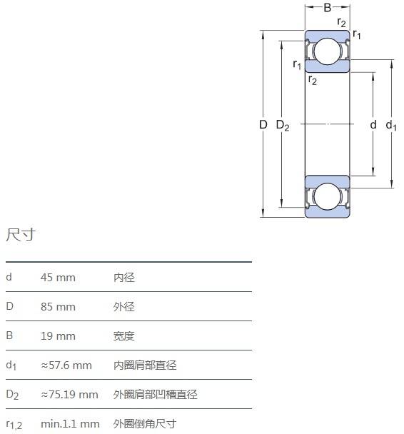 SIAIF不銹鋼深溝球軸承 S6209-2Z 詳細(xì)參數(shù)