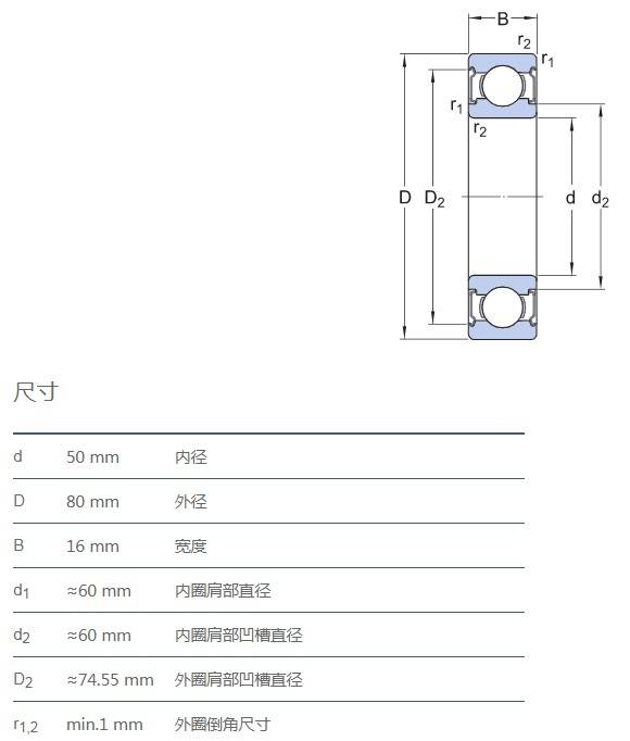 SIAIF不銹鋼深溝球軸承 S6010-2Z 詳細(xì)參數(shù)