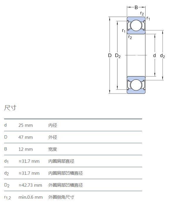 SIAIF不銹鋼深溝球軸承 S6005-2Z 詳細參數