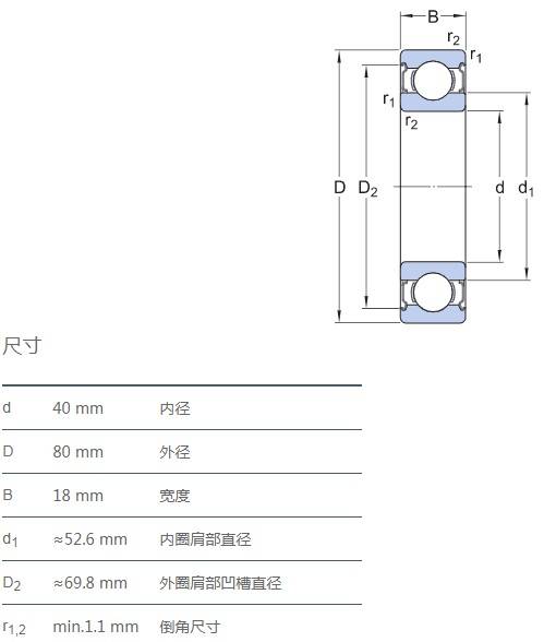 SIAIF耐高溫軸承 6208ZZ/VA201 詳細(xì)參數(shù)