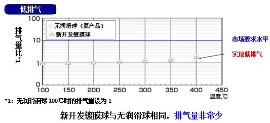 SIAIF憑借在鋼球上采用高溫下耐久性優(yōu)越的固體潤滑鍍膜技術,開發(fā)了與原來的無潤滑軸承同樣的低排氣特性,但壽命可延長至其8倍的固體潤滑鍍膜軸承。